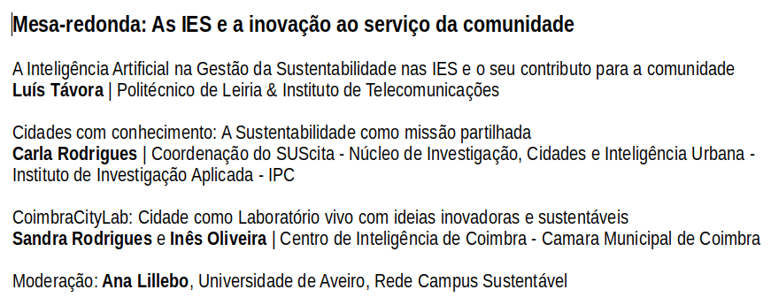 A 7ª Conferência Campus Sustentável (CCS 2024), promovida pela Rede Campus Sustentável, realizou-se nos dias 16 e 17.10.2025 no Insituto Politécnico de Coimbra.